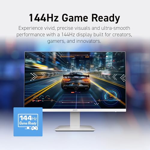 Specification: msi PRO MP273QW E14 27-inch IPS 2560 x 1440 (QHD) Computer Monitor, 144Hz,Adaptive-Synch, HDMI, DP Port, VESA Mountable, Tilt, Speaker, 1ms, White