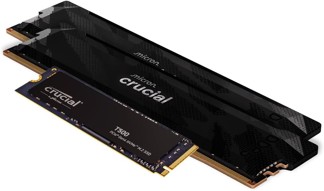 Crucial T500 Gen4 2TB SSD, Up to 7,300MB/s Read Plus DDR5 Pro OC CL32 RAM 32GB Kit (2x16GB), 6400MHz CL32, Black – Storage & Memory Bundle
