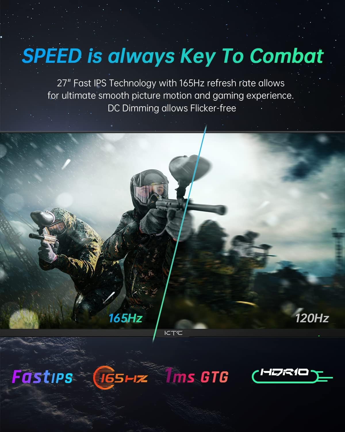 KTC 27″ 1440p 170Hz Gaming Monitor, 2K QHD 1ms GTG Fast IPS, HDR, HDMI/USB C/DP, FreeSync & G-Sync, Swivel Tilt Height Pivot Adjustable, H27T22