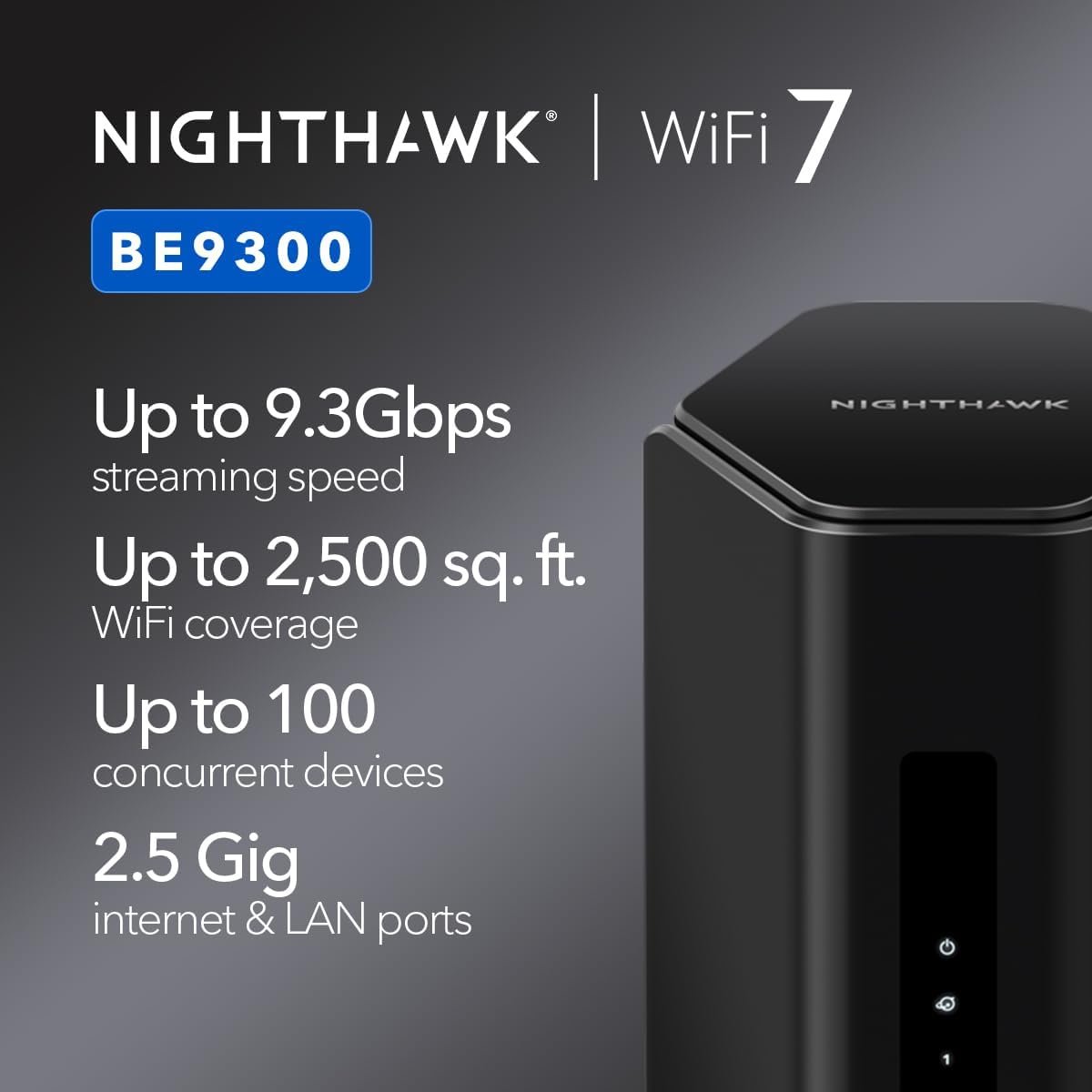 NETGEAR Nighthawk WiFi 7 Router (BE9300) – Router Only, 9.3Gbps Wireless Speed, 2.5 Gigabit Internet Port, Tri-Band for Gaming, Covers 2,500 sq. ft., 100 Devices, VPN – Free Expert Help